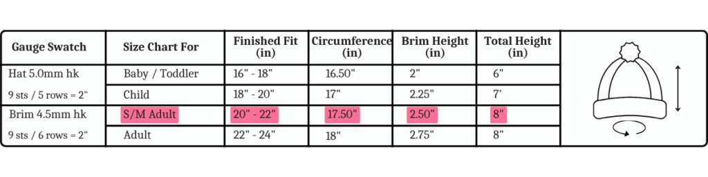 The pattern begins with the fold over brim/band, which is worked in a stretchy, ribbed style that hugs your head comfortably. The body of the hat is worked in a beautiful textured stitch pattern that provides both warmth and visual interest. Finally, the faux pom-pom on top gives the hat a fun and trendy finishing touch. The entire pattern is worked from the bottom up, so you can adjust the length of the brim/band to suit your preference before starting the crown shaping.